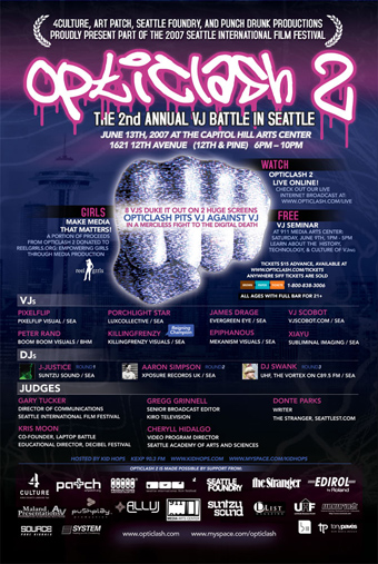 Played the 2007 Seattle Int'l Film Festival Opening Gala on Thursday, May 24, with Darek Mazzone. It was a blast, great crowd, big projector screens, a very nice time. Once again, it was "80s Night" - so I got to use a lot of my clips from my regular See Sound Lounge "80s Night". It's funny becuase the PNB Backstage Bash event last month was also "80s" themed - go figure.
